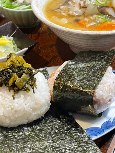 今週のおむすびの具は高菜明太子と梅シラスおむすびです。