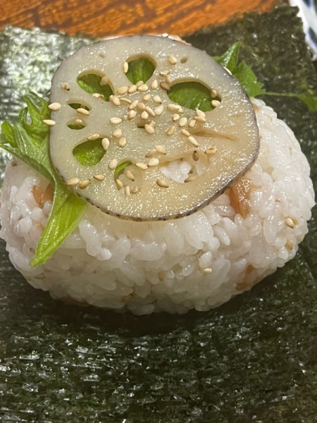 冬のおむすび 梅干しれんこんおむすび 2026-01-24 11:58:20 寒い寒い真冬の盛岡。日中でも氷点下。夜はもっと寒い。冬のおむすびその①『梅干しれんこんおむすび』梅干しをたたいて混ぜたご飯に梅出汁で炊いたれんこんのせて冬にも美味しい。お燗酒とも相性良い。冬においしいおむすびです。