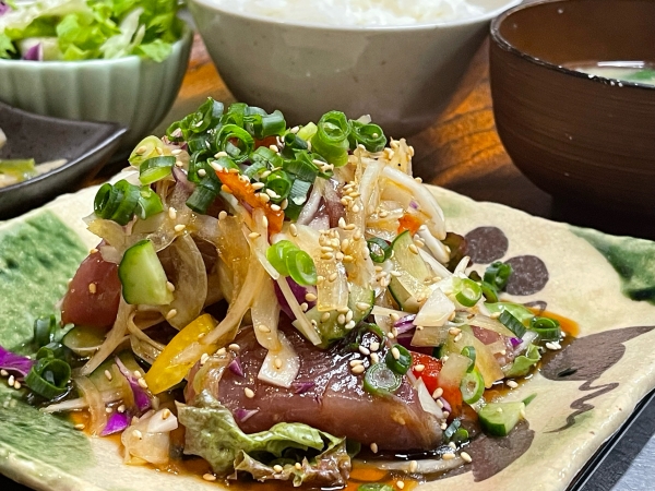 ※写真は春鰹と彩り野菜の香味醤油和え定食です